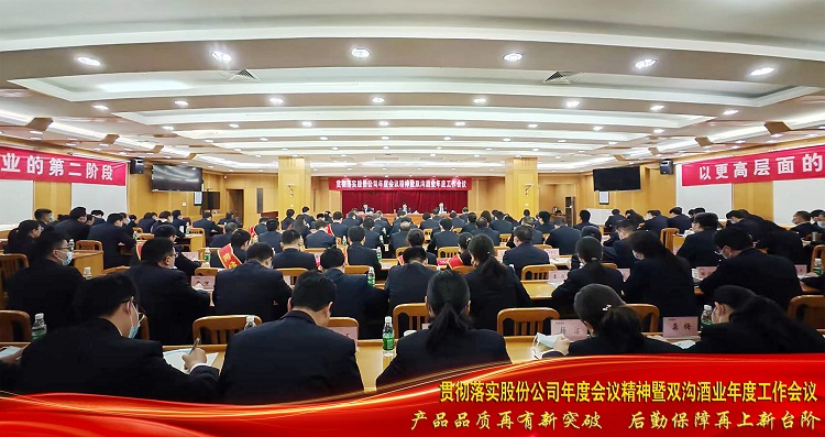 揚帆啟航新征程,踏浪前行向未來。2月21日上午8點18分,公司在辦公樓西二樓會議室召開貫徹落實股份公司年度會議精神暨雙溝酒業(yè)年度工作會議。股份公司副總裁、公司黨委書記、總經(jīng)理李玉領對股份公司年度會議精神進行宣貫落實,并全面部署雙溝酒業(yè)2023年工作,公司黨委副書記耿忠祥總結(jié)回顧2022年工作成績,公司副總經(jīng)理崔鳳元主持會議,各部門、車間及派駐機構(gòu)中層助理以上人員、班科長代表和受表彰的單位、員工代表參加會議。